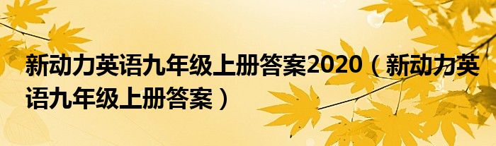 关于新动力英语九年级上册答案2020,新动力英语九年级上册答案这个很多人还不知道,今天菲菲来为大家解答以上的问题,现在让我们一起来看看吧!