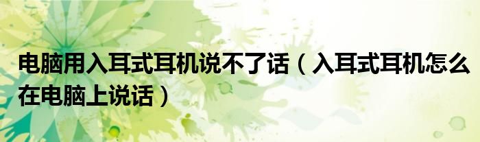 关于电脑用入耳式耳机说不了话,入耳式耳机怎么在电脑上说话这个很多人还不知道,今天菲菲来为大家解答以上的问题,现在让我们一起来看看吧!