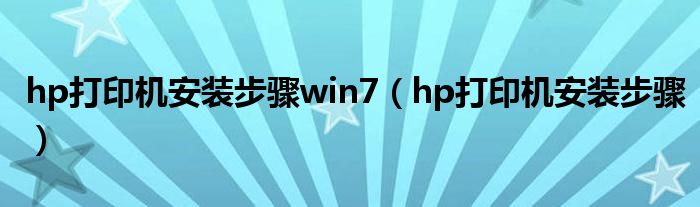 关于hp打印机安装步骤win7,hp打印机安装步骤这个很多人还不知道,今天菲菲来为大家解答以上的问题,现在让我们一起来看看吧!