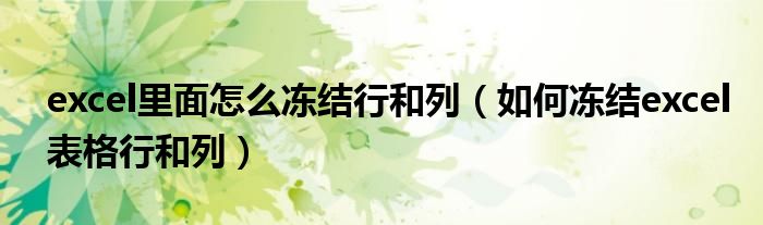 关于excel里面怎么冻结行和列,如何冻结excel表格行和列这个很多人还不知道,今天菲菲来为大家解答以上的问题,现在让我们一起来看看吧!