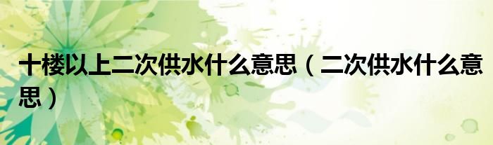 关于十楼以上二次供水什么意思,二次供水什么意思这个很多人还不知道,今天菲菲来为大家解答以上的问题,现在让我们一起来看看吧!