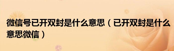 大家好,小晋来为大家解答以下问题,关于微信号已开双封是什么意思,已开双封是什么意思微信很多人还不知道,今天让我们一起来看看吧!