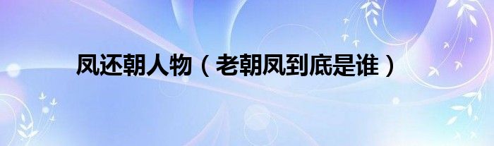 大家好,小晋来为大家解答以下问题,关于凤还朝人物,老朝凤到底是谁很多人还不知道,今天让我们一起来看看吧!