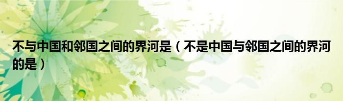 关于不与中国和邻国之间的界河是,不是中国与邻国之间的界河的是这个很多人还不知道,今天菲菲来为大家解答以上的问题,现在让我们一起来看看吧!