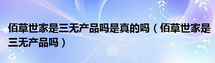 佰草世家是三无产品吗是真的吗(佰草世家是三无产品吗)