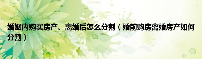 关于婚姻内购买房产、离婚后怎么分割,婚前购房离婚房产如何分割这个很多人还不知道,今天菲菲来为大家解答以上的问题,现在让我们一起来看看吧!