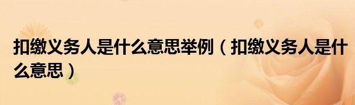 关于扣缴义务人是什么意思举例,扣缴义务人是什么意思这个很多人还不知道,今天菲菲来为大家解答以上的问题,现在让我们一起来看看吧!