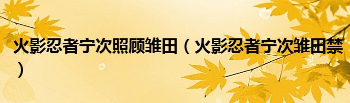 关于火影忍者宁次照顾雏田,火影忍者宁次雏田禁这个很多人还不知道,今天菲菲来为大家解答以上的问题,现在让我们一起来看看吧!